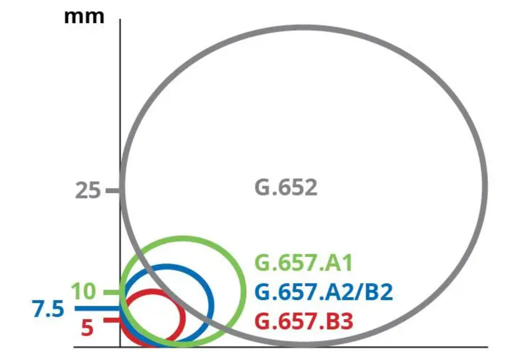 G657A2 fiber is a single-mode fiber designed for specialized high-performance tasks, where networks need to be both robust and flexible simultaneously. What makes it special is that it is bend-insensitive, so it can withstand tight bends and turns without degrading the signal. The minimum bend radius is 7.5 mm, smaller than most other fibers including G657A1, which requires 10 mm. This makes a huge difference when space is at a premium, such as threading cables through congested building conduits or around corners in data centers, making G657 fiber a preferred choice for modern installations.